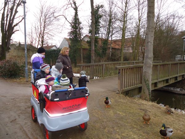 Unglaublich was man in Dieburg alles sehen kann. Die Kinder waren begeistert. Sie sahen viele Enten und dann auch noch eine Kehrmaschine, einen Güterzug, einen Bagger und und und… Überall waren ihre Augen an diesem Morgen in Dieburg.