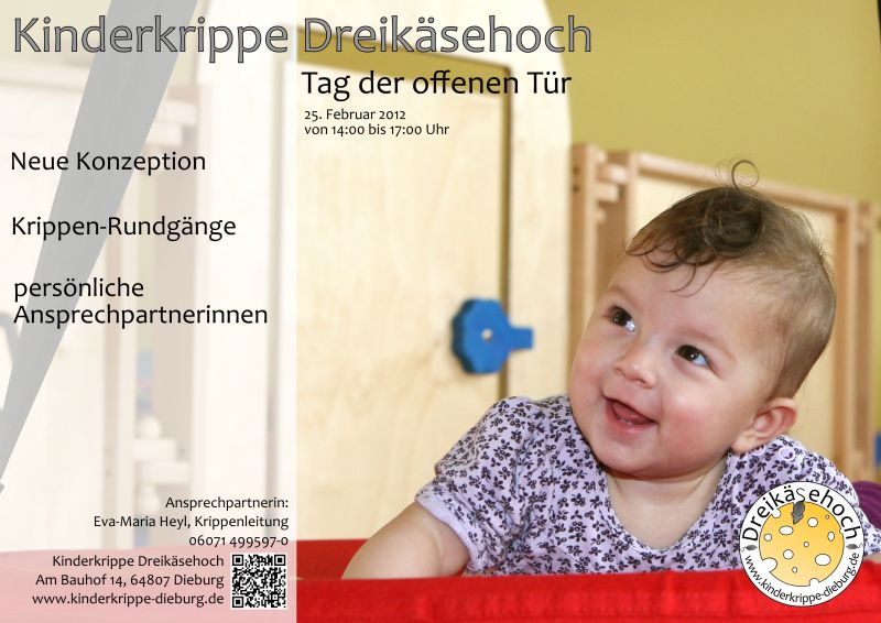 Zwischen 14:00 und 17:00 Uhr stehen wir Ihnen für Ihre Fragen zur Verfügung. Die geführten Rundgänge durch den Dreikäsehoch beginnen um 14:30 Uhr, 15:15 Uhr und um 16:00 Uhr. Bei Kaffee und Kuchen können Sie sich anschließend von den Erzieherinnen Ihre Fragen beantworten lassen.