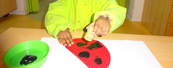 Unsere Rasselbande war in dieser Woche kreativ aktiv. Die Kinder haben schöne Marienkäfer aus Papier gebastelt und mit Korken Punkte gestempelt.