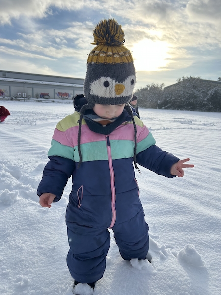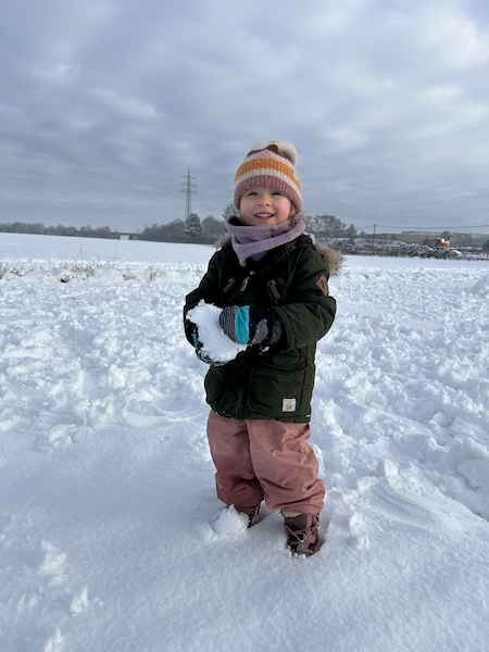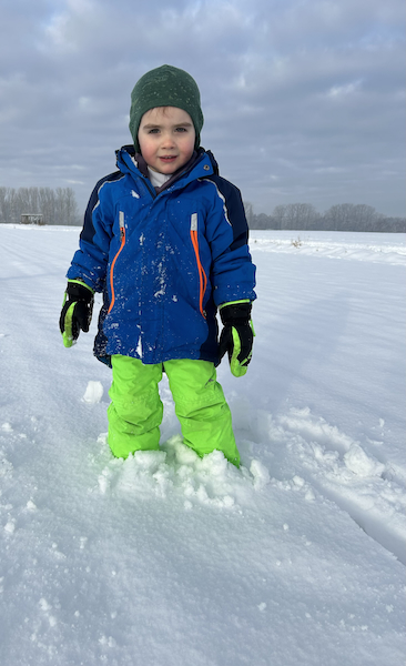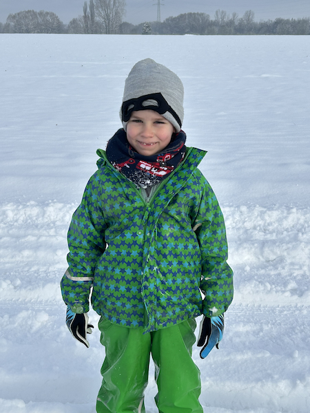 Bei unserem Ausflug ins Feld haben wir einen Winterspaziergang durch die verschneite Landschaft gemacht. Das Feld lag unter frischem Schnee und alles war weiß.