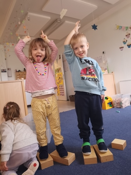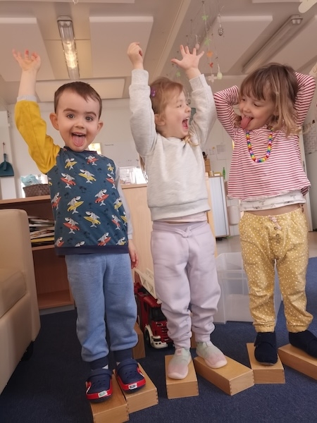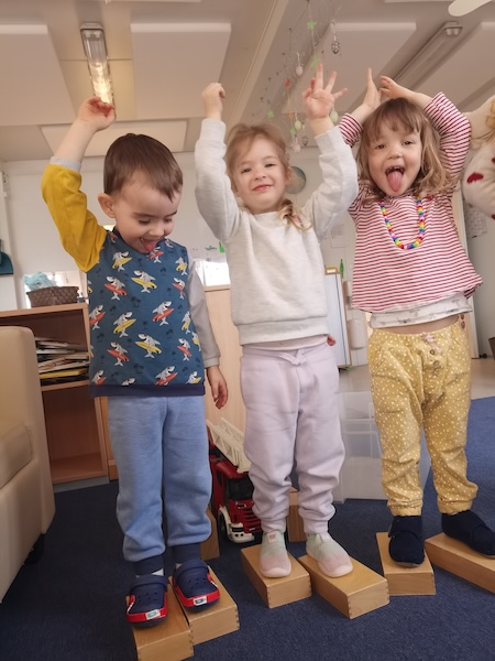 Momentan haben die Kinder in unserer Gruppe einen großen Bewegungsdrang. Sie möchten sich viel bewegen, ausprobieren und aktiv sein.