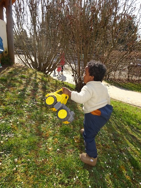 Das milde Wetter lädt die Kinder dazu ein, viel Zeit im Garten zu verbringen und die Natur zu entdecken. Besonders beliebt sind in der Rasselbande aktuell die Bagger und Kipplaster, mit denen fleißig gebaut und gespielt wird. Das Außengelände wird dabei in vollen Zügen genutzt – das Häuschen und der Sandkasten kommen bei den Kindern besonders gut an. Ein weiteres Highlight ist der hohe Hügel, der einen tollen Überblick über das gesamte Gelände bietet und zum fröhlichen Rutschen einlädt.