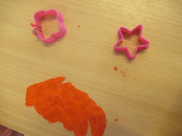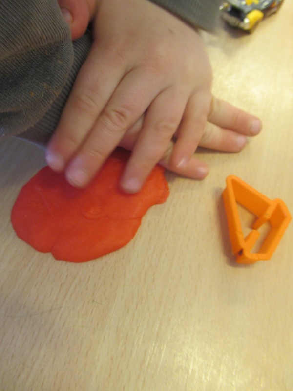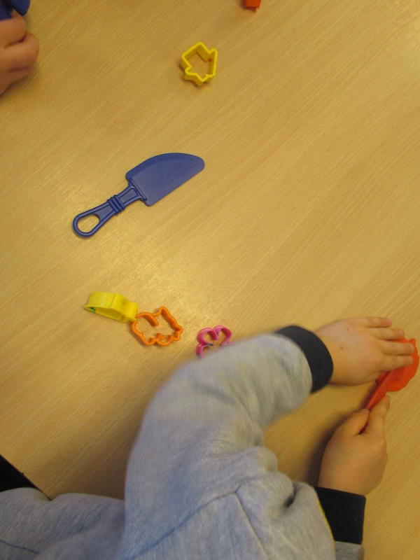 Heute wird in der Trollegruppe fleißig geknetet. Jeder bekommt ein Stück Knete und dann holen wir noch verschiedene Austechförmchen, Rollen und Schneidewerkzeug heraus. Dann kann es losgehen und es wird fleißig gerollt, Knete ausgestochen und ausprobiert, was man alles mit der Knete machen kann. Wie fühlt die Knete sich an? Erst etwas fest und nach und nach wird sie etwas weicher. Dabei  erleben die Kinder eine schöne Sinneserfahrung und haben jede Menge Spass.