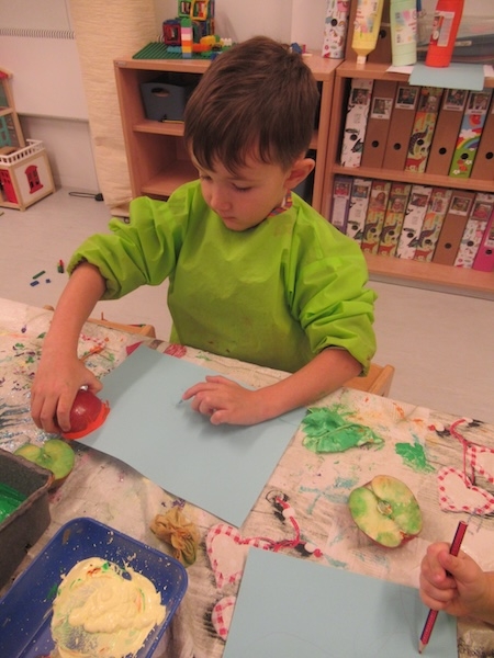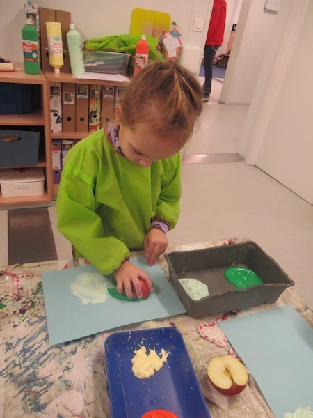 In den letzten Tagen hat sich rund um unseren Apfelbaum einiges getan und unsere Kinder waren mit Begeisterung dabei! Schon seit einiger Zeit beobachteten sie, wie der Baum draußen im Garten blüht und wächst. Einige Kinder fanden sogar schon in der Vorwoche die ersten heruntergefallenen Äpfel und sammelten sie neugierig auf.