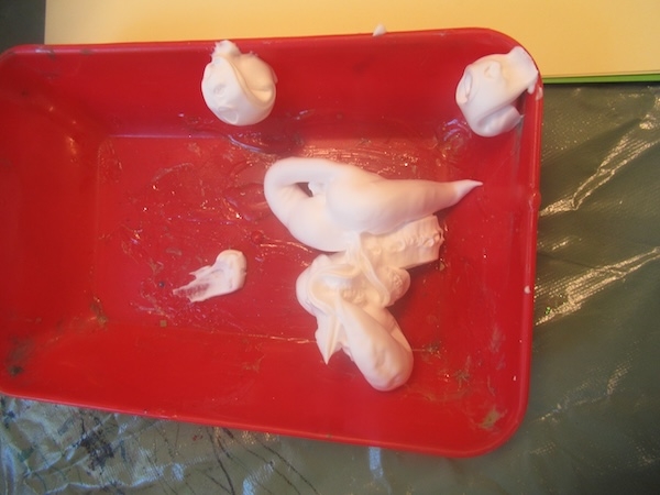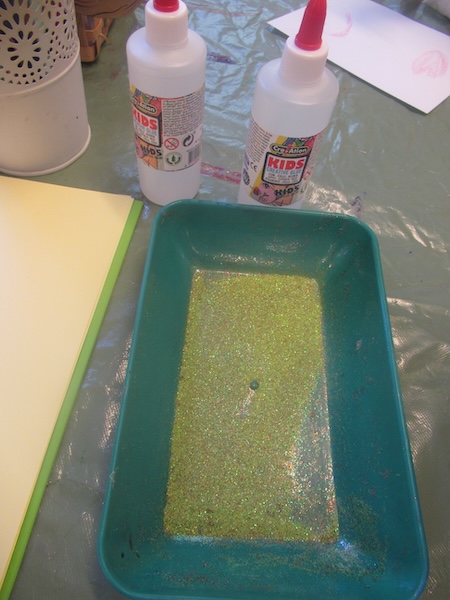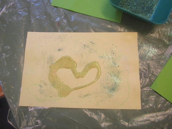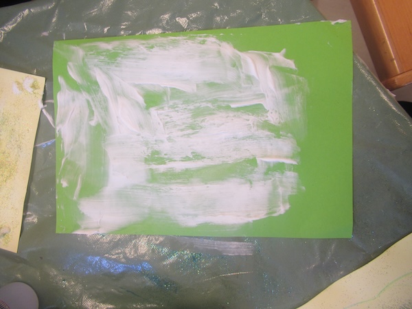 Heute wird mit Glitzer und Rasierschaum in der Trollegruppe experimentiert. Dafür brauchen wir Rasierschaum, Pinsel, Glitzer, Papier und Kleber. Dann kann es losgehen. Einige gehen voller Freude mit ihren Händen in den Rasierschaum und gestalten ihre Bilder. Andere tasten sich langsam an die Materialien heran und kleben dann lieber mit Glitzer oder benutzen die Pinsel, für den Rasierschaum. Zum Schluss haben alle großen Spaß und es entstehen tolle Kunstwerke.