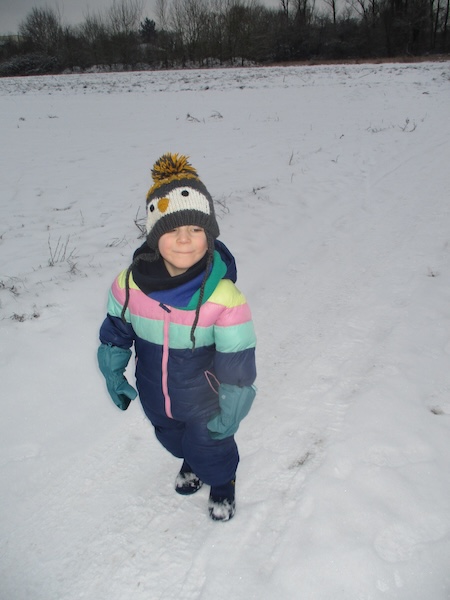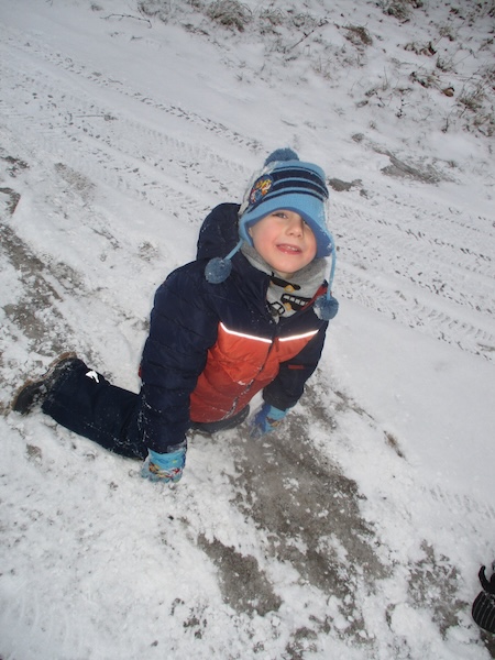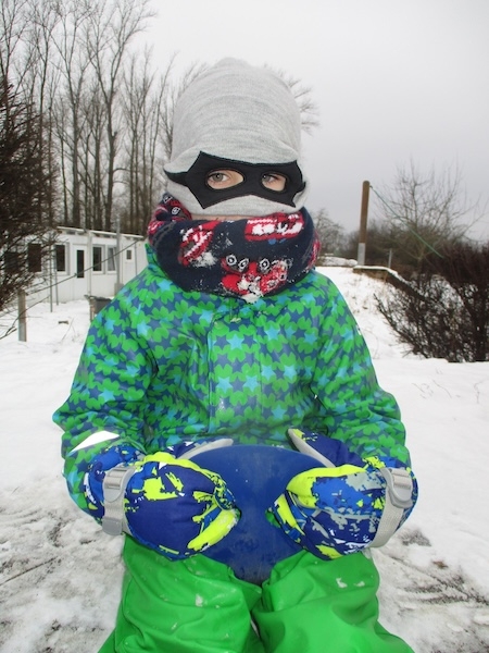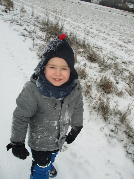 Das muss natürlich ausgenutzt werden, also schnell den Schneeanzug/ die Schneehose, Winterstiefel, Mütze, Schal und Handschuhe angezogen und ab in den Schnee!