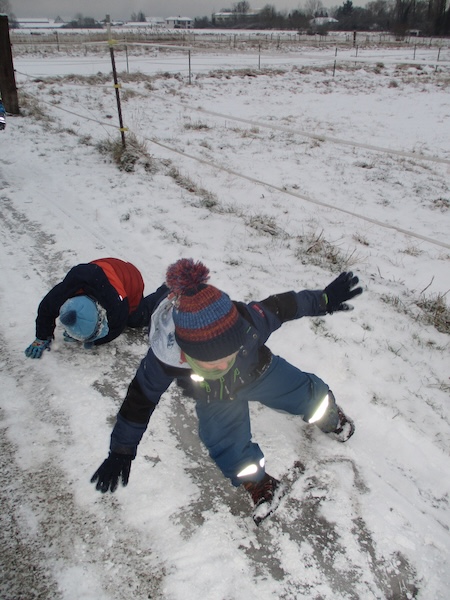 Ein winterlicher Spaziergang gehört dann eben auch dazu, inklusive Rutschpartie auf gefrorenem Boden.