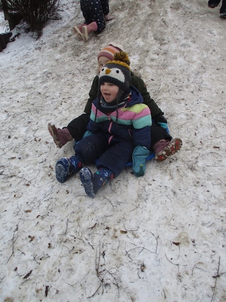 Um den Jahresbeginn rundum perfekt zu machen und wenn der eigene Kindergarten dann auch noch einen kleinen Hügel hat, der zum Rodeln einlädt, darf eine (oder auch mehrere) kleine Abfahrt natürlich nicht fehlen. Das macht sooo viel Spaß und sorgt für viele strahlende Kinderaugen!