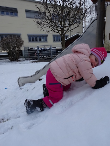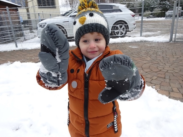 Die Möglichkeit im Schnee zu spielen lassen sich die Sonnenscheinkinder natürlich nicht nehmen. Außerdem ist es auch sehr interessant herauszufinden wie sich Schnee anfühlt? Ist er kalt oder warm? Hart oder weich?