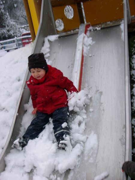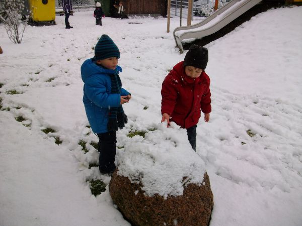 Die kleinen Strolche spielen im Garten mit dem ersten Schnee in diesem Winter. Das macht ganz schön Spaß und es gibt einiges zu entdecken…