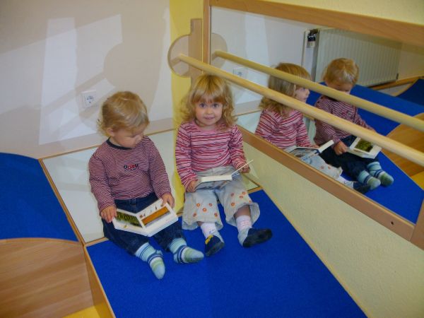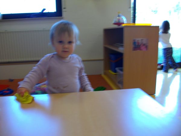 Wir kneten, basteln, turnen, singen, tanzen, schaukeln, putzen Zähne, machen Eltern- Kind- Nachmittage, machen Spaß miteinander, schauen Bücher an, fahren mit dem Bobbycar, essen, toben im Bällchenbad und vieles, vieles mehr…