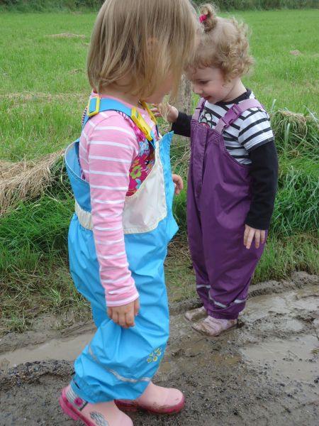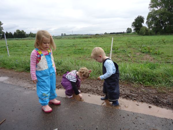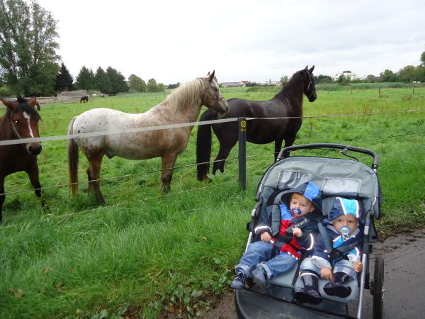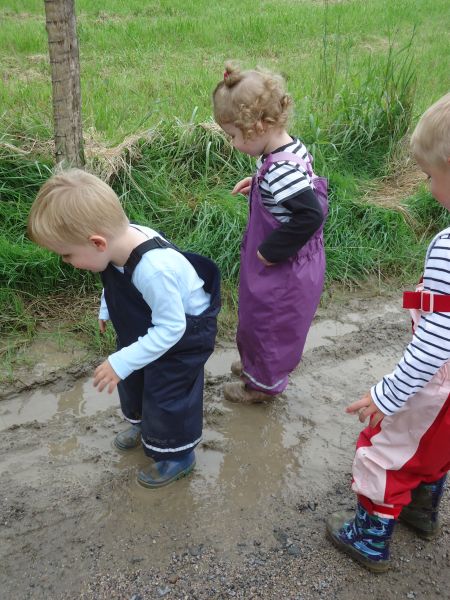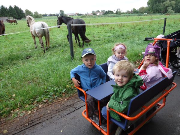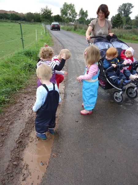 Die Zwerge und Wichtel haben die lauen Herbsttage genutzt um mit den Bollerwagen und Buggys aufs Feld zu gehen. Dort wurden die Pferde besucht und dank der Matschhosen und Gummistiefel konnte ausgiebig in Pfützen gesprungen werden, was den Kindern sichtlich viel Spaß bereitet hat.
