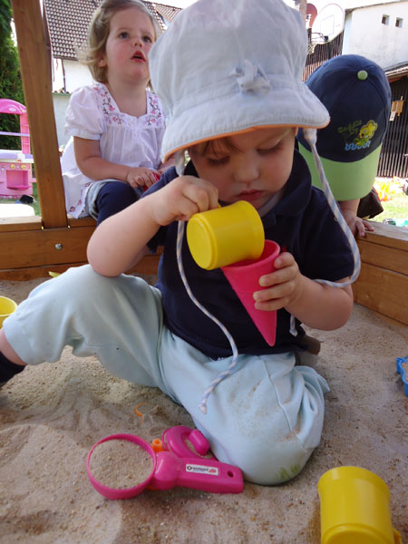 Im Juli waren die Zwerge und Wichtel bei einem Kind zum Abschied feiern eingeladen. Im Garten der Familie wurde geschaukelt, getobt und im Sandkasten gespielt. Auch für das leibliche Wohl wurde gesorgt, besonders gut schmeckten die frischen Erdbeeren.