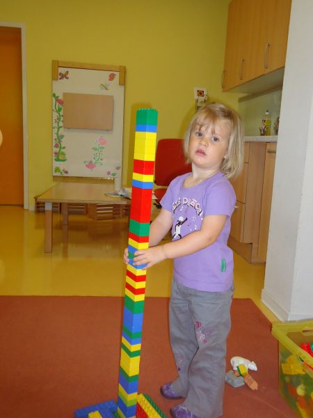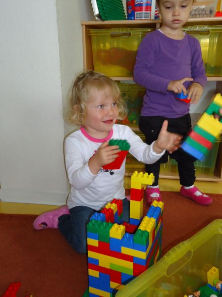 Wir haben viel mit Lego gespielt. Häuser, Garagen und Türme wurden von den Zwergen und Wichteln gebaut. Besonders der hohe Turm gefiel den Kindern gut, damit dieser nicht umfällt hatten 2 Kinder die Idee eine Mauer rund herum zu bauen. Diese Idee zeigt die Kreativität der Kinder, welche beim Bauen freien Lauf hatte.