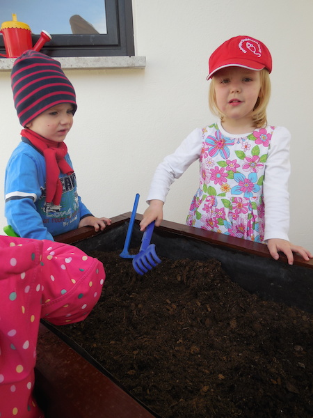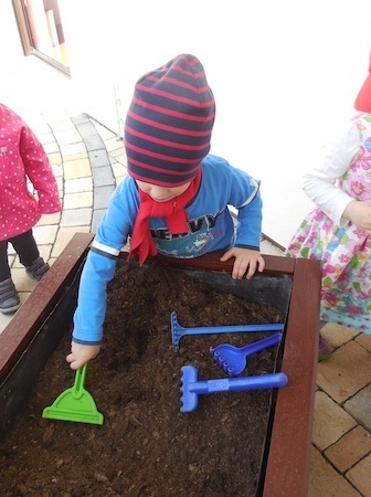 Die Kinder der Sonnenscheingruppe verschönern die KiTa und haben schöne bunte Schmetterlinge gebastelt. Damit es nicht nur drinnen, sondern auch draußen so schön aussieht haben sie Wildblumen und Kresse gesät und freuen sich schon sehr darauf wenn sie die ersten bunten Blüten sehen können.