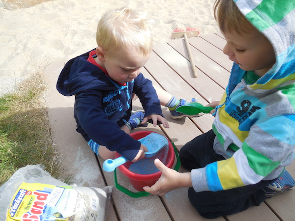 Die Kinder der Sonnenscheingruppe haben sich gedacht, dass es schön wäre die Welt ein bisschen bunter zu gestalten und so haben sie beschlossen Sand zu färben. Das war eine langwierige Aufgaben, die neben Konzentration und einer ordentlichen Portion Geduld auch allerhand Geschick erforderte. Die Kinder haben bunte Kreide mit einer Reibe gerieben und den bunten Kreidesand dann mit Vogelsand vermischt. Anschließend wurden die verschiedenen Farben in kleine Flaschen abgefüllt und stehen jetzt zum Spielen oder einfach nur Bewundern zur Verfügung