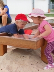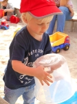 Die Strolche lieben es ohne Schuhe und Strümpfe mit nackten Füßen herumzulaufen und es macht ihnen ganz viel Spaß aus Wasser und Sand Matschteig herzustellen und damit virtuose Kuchen zu backen.